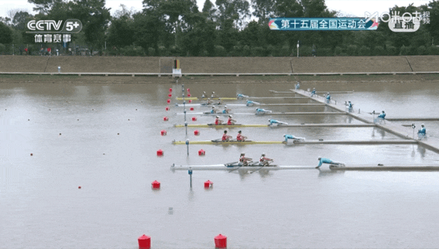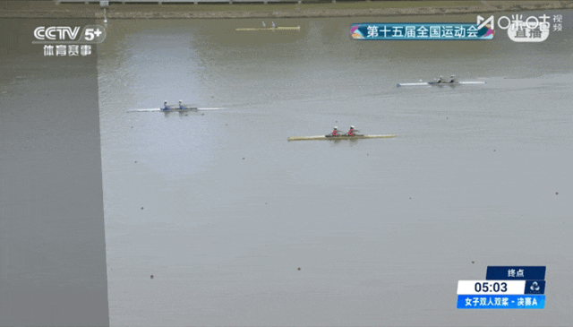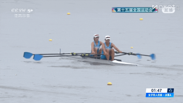 决赛中,两名运动员配合默契,劈波斩浪,划动的每一桨都完美诠释出了力与美。最终,两人以5分03秒31的成绩毫无悬念地拿下了这枚金牌。